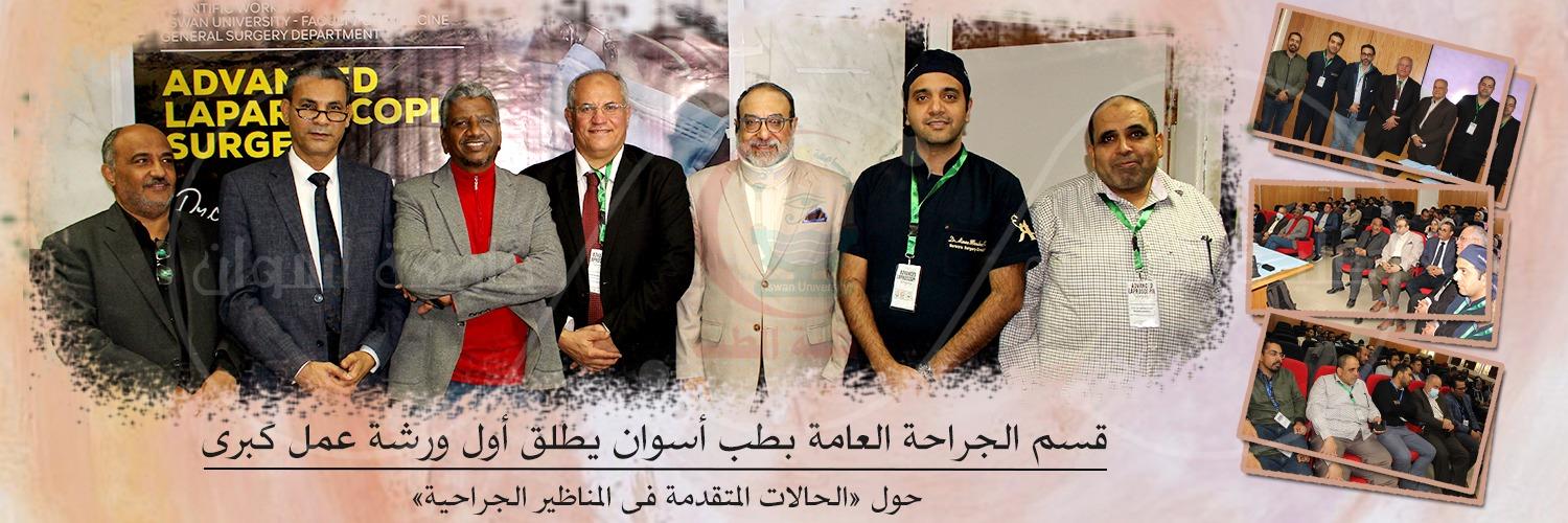 تحت رعاية الدكتور لؤي سعد الدين نصرت القائم بأعمال رئيس جامعة أسوان، والدكتور محمد زكى الدهشورى عميد كلية الطب، والدكتور محمد صلاح الدين فهمى المدير التنفيذي لمستشفيات جامعة أسوان، وتحت إشراف الدكتور منصور كباش المشرف العلمي لقسم الجراحة العامة ورئيس جامعة أسوان الأسبق، والدكتور إبراهيم الزيات رئيس قسم الجراحة العامة بكلية الطب بأسوان، نظم قسم الجراحة العامة في مستشفيات جامعة أسوان أول ورشة عمل متخصصة حول “الحالات المتقدمة في الجراحة بالمناظير”.