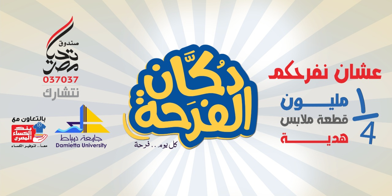 تستقبل جامعة دمياط بحرم الجامعة بدمياط الجديدة دكان الفرحة التابع لصندوق تحيا مصر، حيث يقدم الدكان هدية لطالبات الجامعة بمعدل ثلاث قطع ملابس لكل منهن من الماركات العالمية بحسب اختيارها، و ذلك بشرط استيفاء شروط منح الهدية.