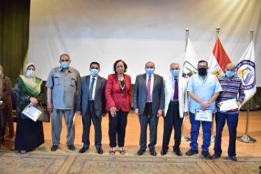 وكرم الدكتور منصور كل من : هانئ حسن اسماعيل بإدارة الجامعة ، وجابر صديق سالم بكلية الطب البشري، محمد سمير اسماعيل بكلية التكنولوجيا والتعليم ، وعبد الوهاب محمود يوسف بكلية العلوم ، وعزت عبد البصير محمد بكلية الخدمة الاجتماعية التنموية ، وناهد راضي سيد بكلية الطب البشري ، وجمال حسين محمد بإدارة رعاية شباب ، واحلام جابر جودة بكلية التمريض ، وجمال احمد عبدالله بكلية الطب البيطري .
