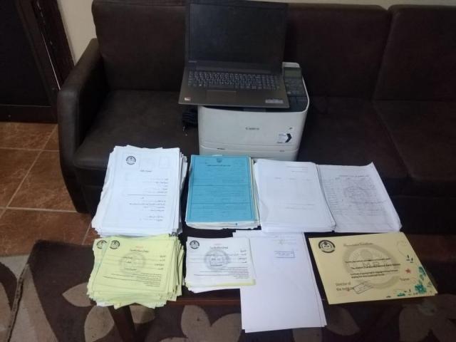 كما أمكن ضبط (جهاز حاسب آلي “لاب توب ” – وطابعة ألوان)، وبفحصهما فنياً تبين أنهما محملان بالعديد من المطبوعات والمواد العلمية الخاصة بنشاط الأكاديمية، ومبلغ مالي من حصيلة نشاطها الإجرامي، وبمواجهتها اعترفت بنشاطها الإجرامي.
