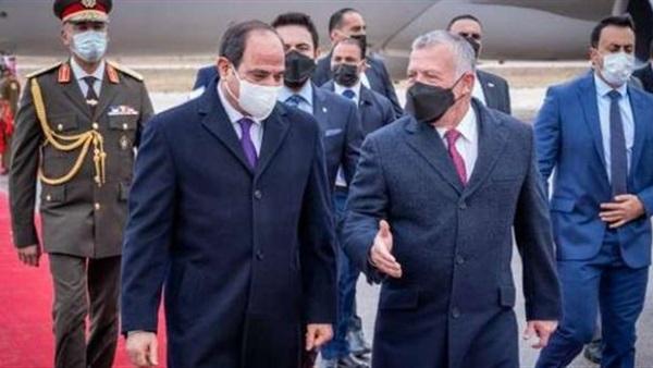 أعرب العاهل الأردني الملك عبدالله الثاني عن ترحيب المملكة الأردنية قيادة وشعبًا بزيارة الرئيس، مؤكدًا ما تتسم به العلاقات المصرية الأردنية من تميز وخصوصية، ومشيدًا في هذا الإطار بدور الرئيس في تعزيز العمل العربي المُشترك في مواجهة الأزمات والتحديات الراهنة بالمنطقة، وهو الدور القيادى الذى يعد نموذجًا يحتذى به في الحفاظ على الاستقرار والنهوض بالأوضاع التنموية والاقتصادية والاجتماعية في الوطن العربي.