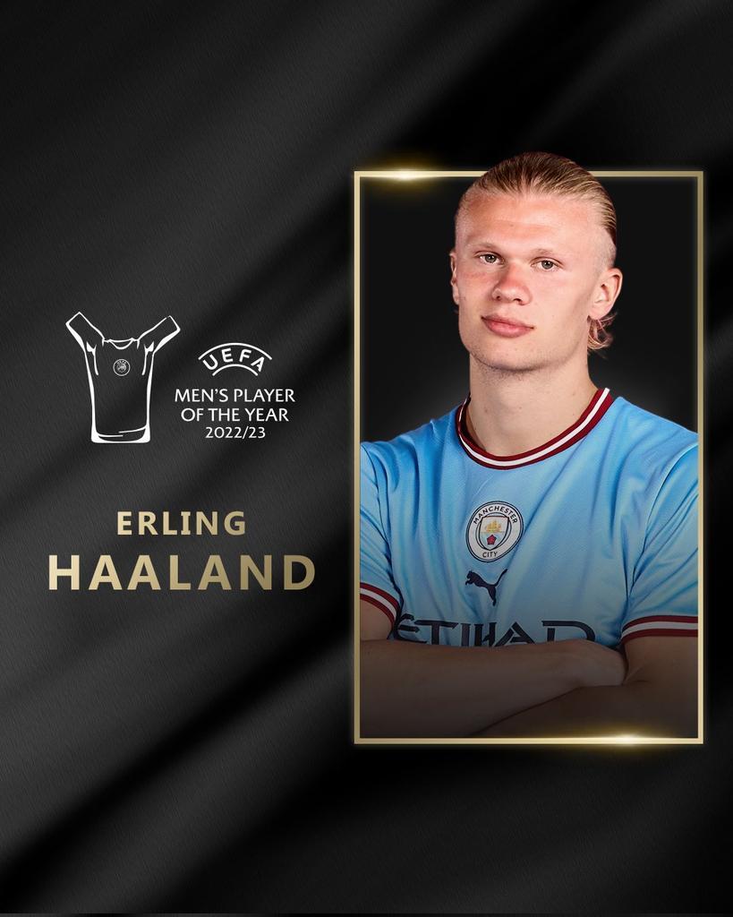 ويحصد هالاند هذه الجائزة، ليضيف لأول مرة جائزة أفضل لاعب في أوروبا لنادي مانشستر سيتي، المقدمة من الاتحاد الأوروبي لكرة القدم «يويفا».